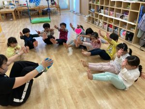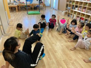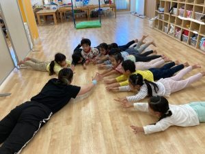 講師の先生の真似をして体を動かしながら楽しく英語に触れています🌈💞