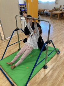 次に手の力とお腹の力で鉄棒に乗ってみました🌟