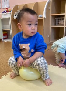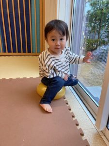 バランスボールのようにして遊び、感覚を養ってます(笑)