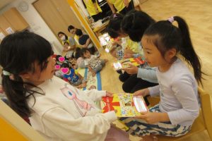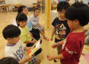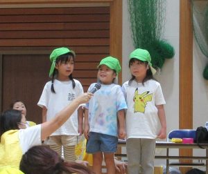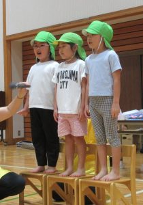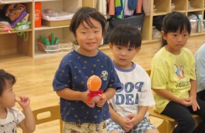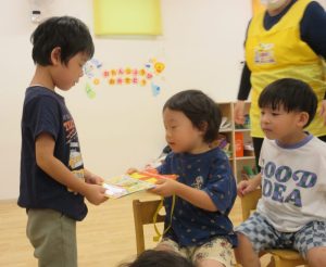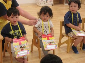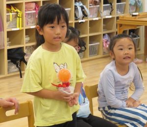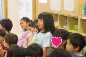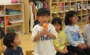 今月は7人のお友だちが、緊張しながらも先生やクラスのお友だちの前に出て、