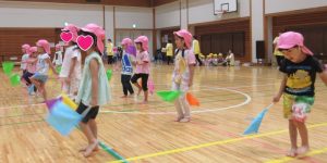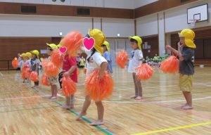 ポンポンやフラッグを使った遊戯や鳴子を使ったソーラン節。