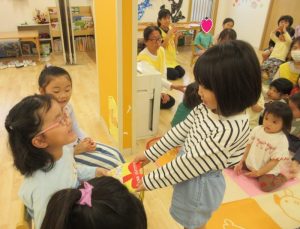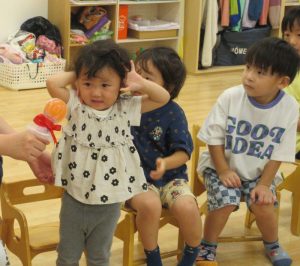未満児のお友だちは、お家の人と一緒に参加しましたが、