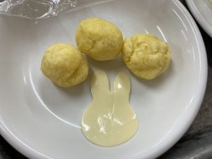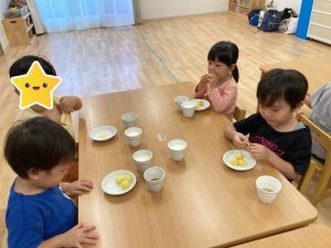 〝1〟の指で付ける事と少しずつ取る事に気を付けながらお月見団子作りをしました🌕