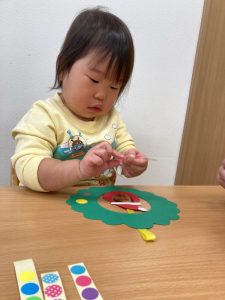 のぞみ組は、シールの柄を選んで剥がすのも“自分で!”