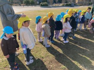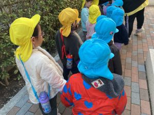 この日は、つばさ組さんがみんなで❝だるまさんがころんだ❞をしていたので興味をもったお友だちが一緒に列に並んでいました(笑)