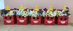 のぞみ組のお友だちは、シールを使って鬼の顔も作りました!