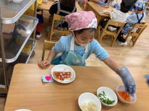 今回は食育で行った『ピザトースト作り』の様子を紹介します🌟