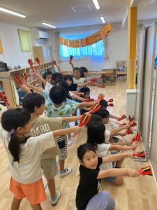 親子競技のキャタピラも二人三脚もみんなで練習しました🌟