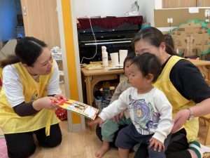 のぞみ組のお友だちはたくさんのお兄さんお姉さんに驚いて、泣いてしまったので