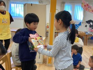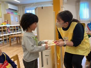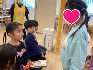 お友だちや保育者から誕生日カードをもらうと、