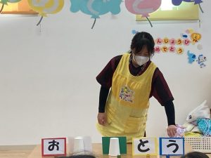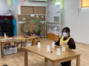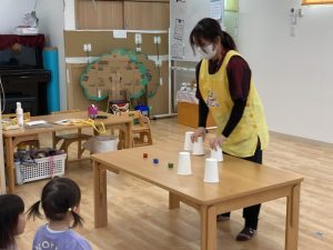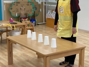 紙コップに隠した、プレゼントがどこに入っているか当てるゲームです🎵