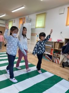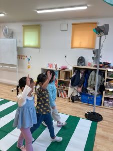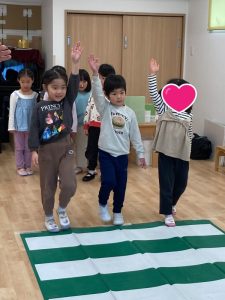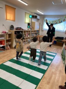 次の日に戸外へみんなで行くと交通ルールを意識して公園まで行くことができていて