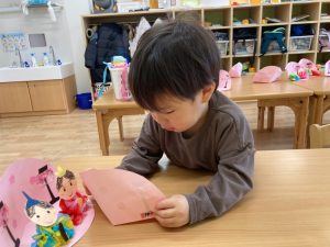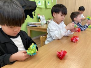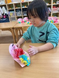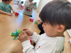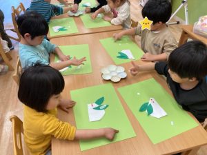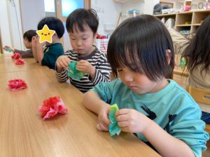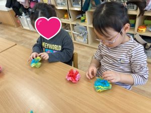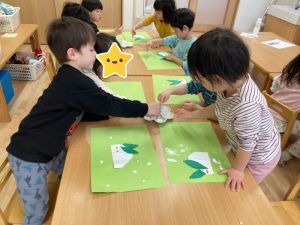 作りながら、雪が降った日のことを思い出して『雪だるま作ったよ』『また、遊びたいな』というお友だちもいました。