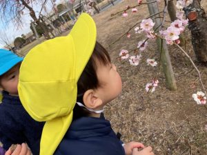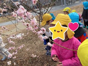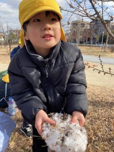 雪遊びと梅の花の観察の様子🌸