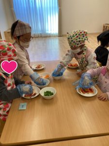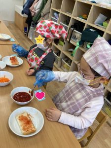 食育では、みんながずっと楽しみにしていた〝ピザ作り〟がありました🍕